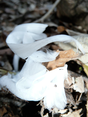 We were walking along the Barton Creek greenbelt during that cold snap in early Jan. At first my friend thought it was a plastic bag around the bottom of the plant, but then we saw another one and looked closer. Ice! Only around the base of certain plants. Absolutely beautiful.