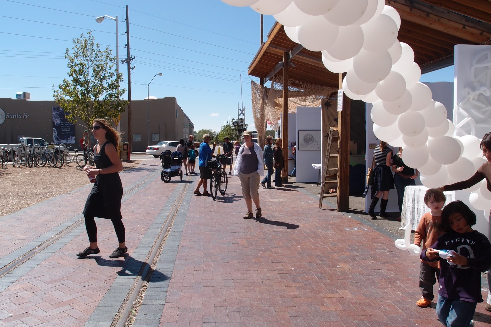 After hiking, I went to the cultural, art event happening at the rail yard park. I love how there is always something like this happening in Santa Fe for me to do. Up and coming artists presented innovative booths. I went to the Art See booth to get my free pass to see the last day of the current exhibition at Site Santa Fe. Biology/art-like hand-made flowers, mushrooms and other botanicals were pinned to black walls. From a distance, they reminded me of reindeer lichen on a rock; they also made me think of jelly fish in the depths of the sea or cells under a microscope.